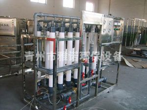 為了更好地保護反滲透設備,延長設備的壽命,提前處理原水,用活性炭和石英砂過濾去除大粒子雜質(zhì),用離子交換樹脂軟化去除水中的